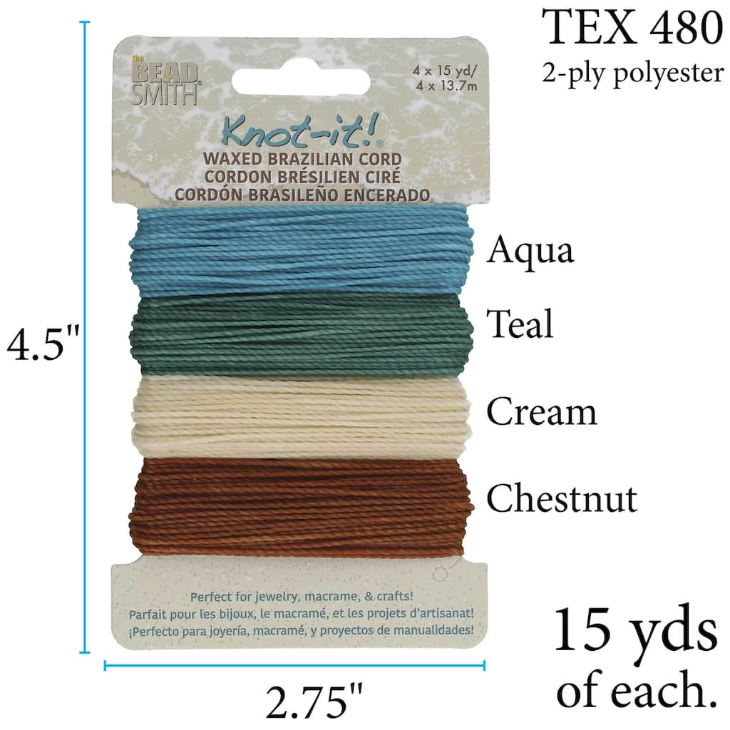 The Beadsmith Knot-it! 100% waxed polyester cord is extremely durable, strong, color fast and water resistant. An artisan cord that knots easily and burns beautifully with a nice finish. Made for macramรฉ but can used for friendship bracelets, knotted jewelry, leather work, basket weaving and much more!