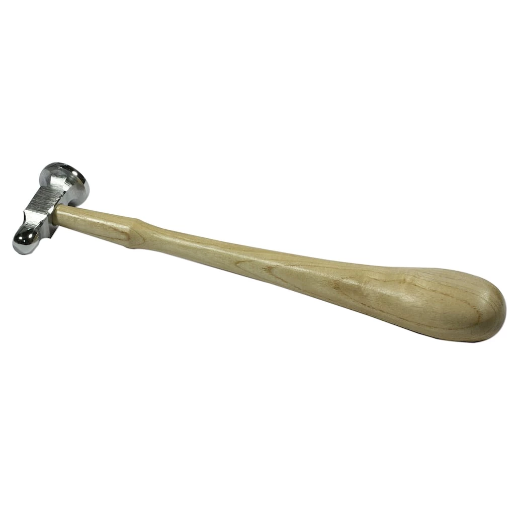 The smooth face of this hammer will flare out wire when hammered on a hard smooth surface such as a bench block or anvil. The pein side can be used to make a “hammered” effect, to flare eyelets, or round out metal designs.