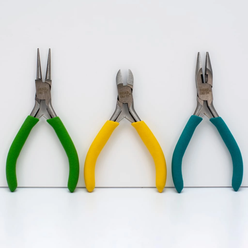 These pliers are color coded to ensure you pick up the right tool every time.Β Includes: Chain Nose with blue handle, Round Nose with green handle, Side Cutter with yellow handle.