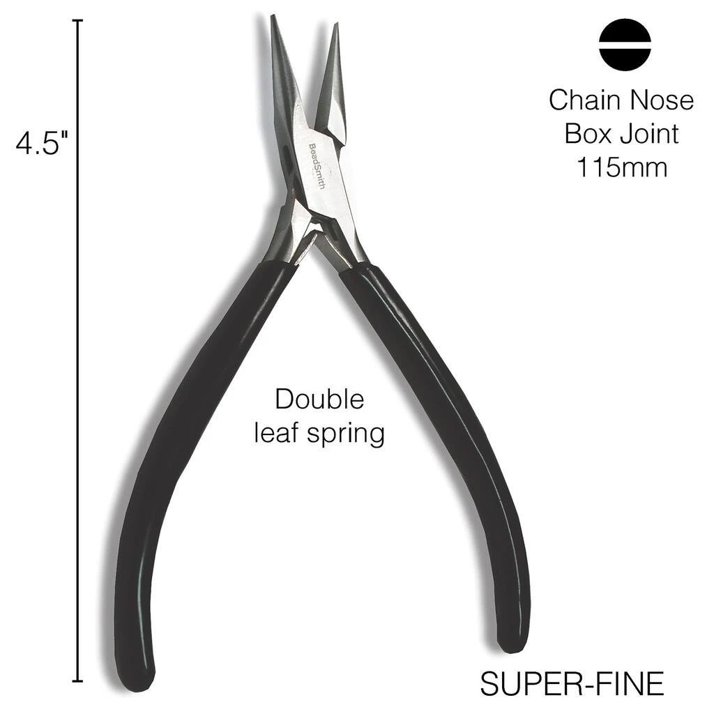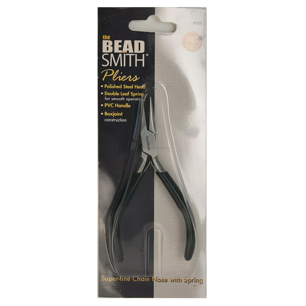 Designed to create loops, eye pins, jump rings, clasps, coils, curved beads, and more, these pliers are an excellent addition to any jewelry making or jewelry repair kit. Made from high-quality metal jaws and comfortable vinyl handles, this tool can be used on most bendable wires that are used during DIY jewelry projects. All of these features allow for comfortable use and precision in all of your beading, jewelry, and DIY crafting projects. These 4.5″ chain nose pliers have extra fine tips and are wonderful for close up precision applications.