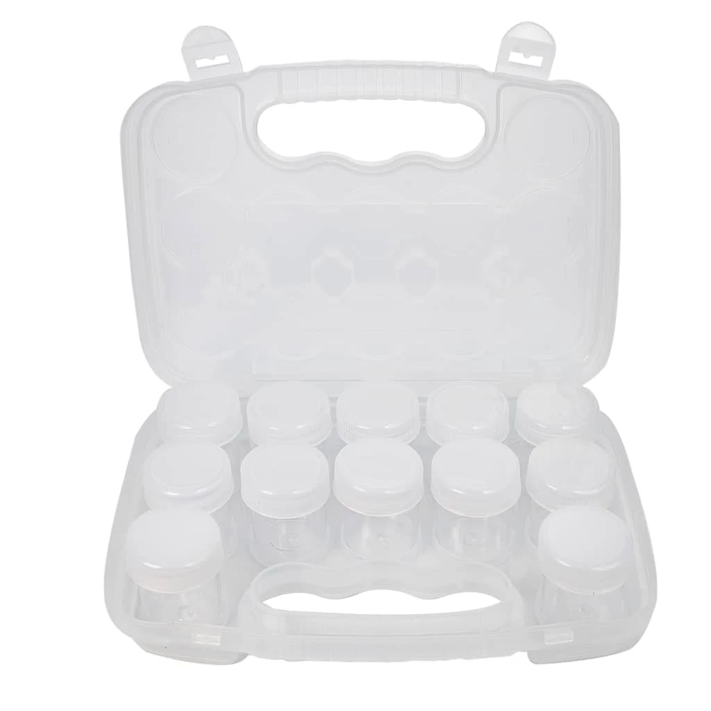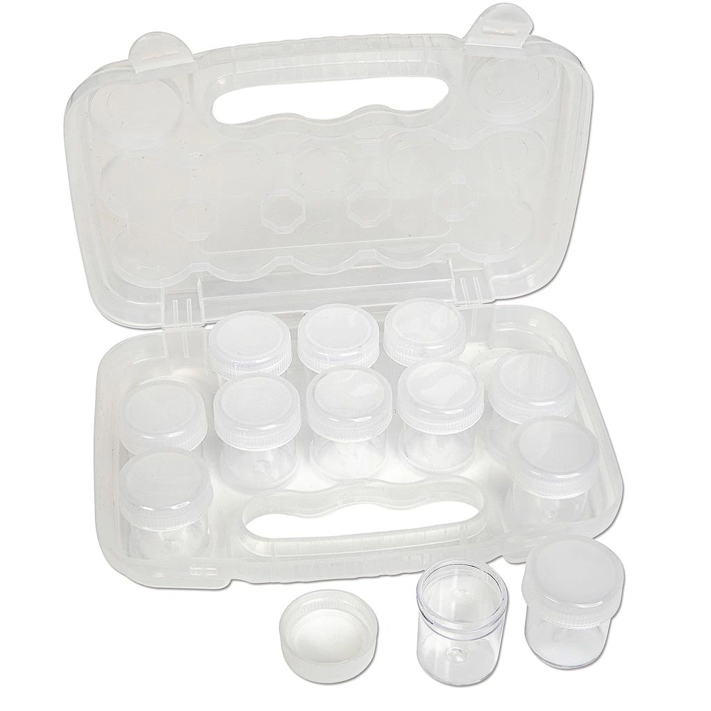 - Includes 12 containers with lids (1.5” x 1.5”)