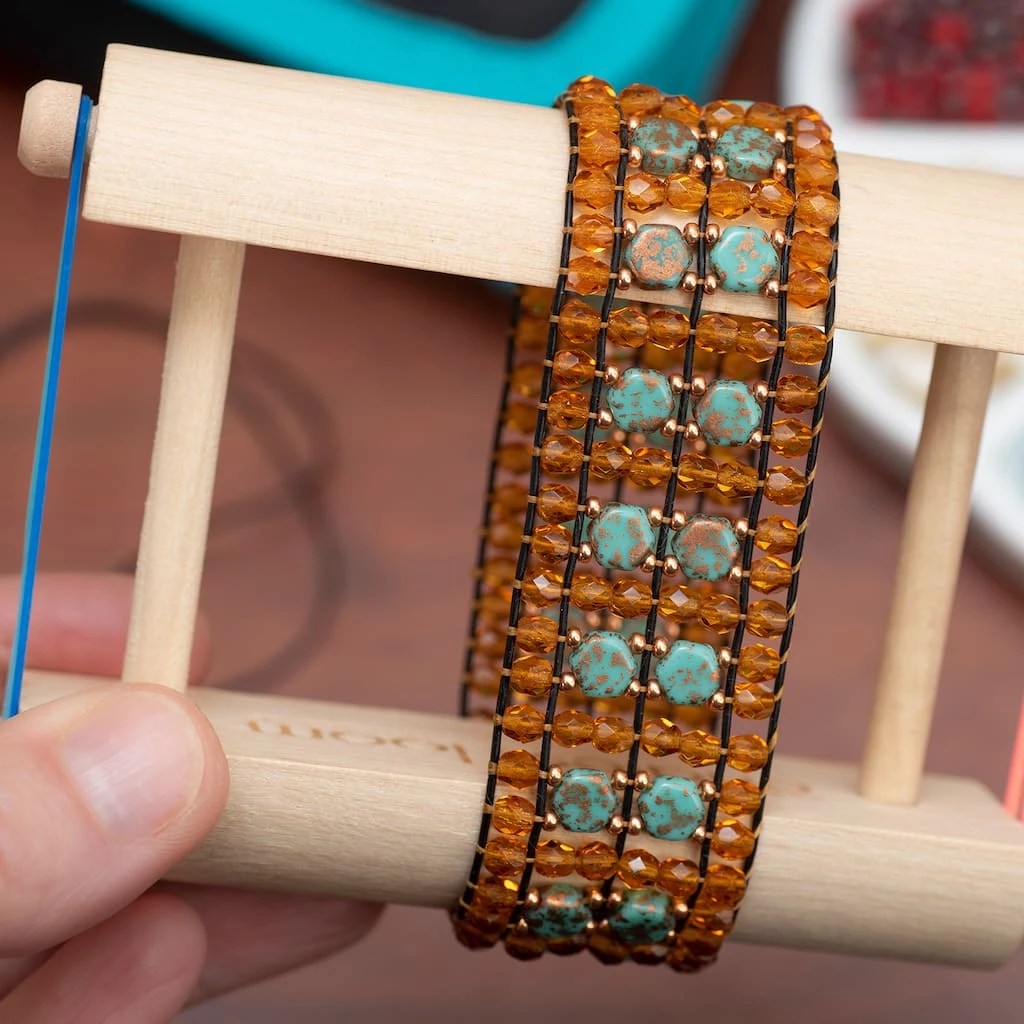 Deb Moffet-Hall’s Endless Loom bands are used with the Endless Loom to create beautiful bracelets with ease. The jewelry beading loom (sold separately) is a tool used in making jewelry with no warp ends. You can create stretch, clasp and wrap style bracelets. The bands are used to assist in quick and easy assembly for the Endless Loom. Package includes 12 6″ bands; 10 7″ bands and 6 8″ bands.ย