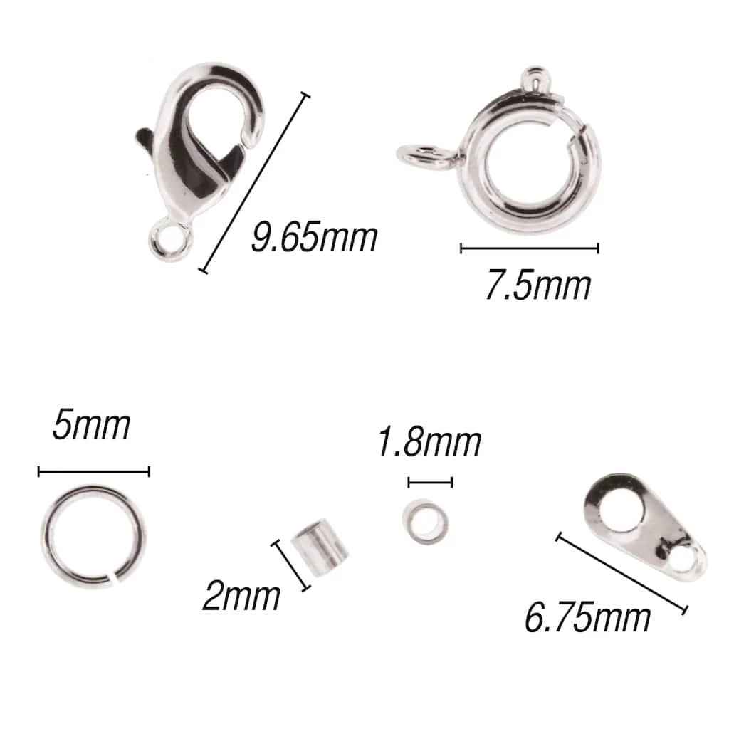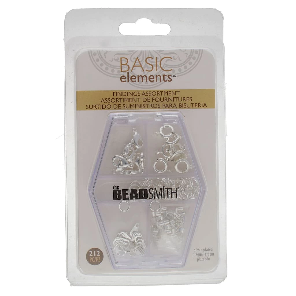 The Beadsmith finding assortments are small packages with a variety of components used to finish or repair any jewelry project. This package comes with lobster clasps, spring rings, jump rings, end tags, and crimp beads. Jump rings, a simple wire loop, are used to connect jewelry parts, like attaching a clasp to a necklace. Crimp beads are small metal beads that you squish (crimp) onto beading wire to make the beads stay where you want them or connect beading wire to a jump ring or clasp. Lobster clasps are secure clasp useful for finishing necklaces, bracelets, and other jewelry. Spring rings are a quite common clasp which is inexpensive and secure. Add this jewelry string to your crafting supplies today and unlock your artistic talents.