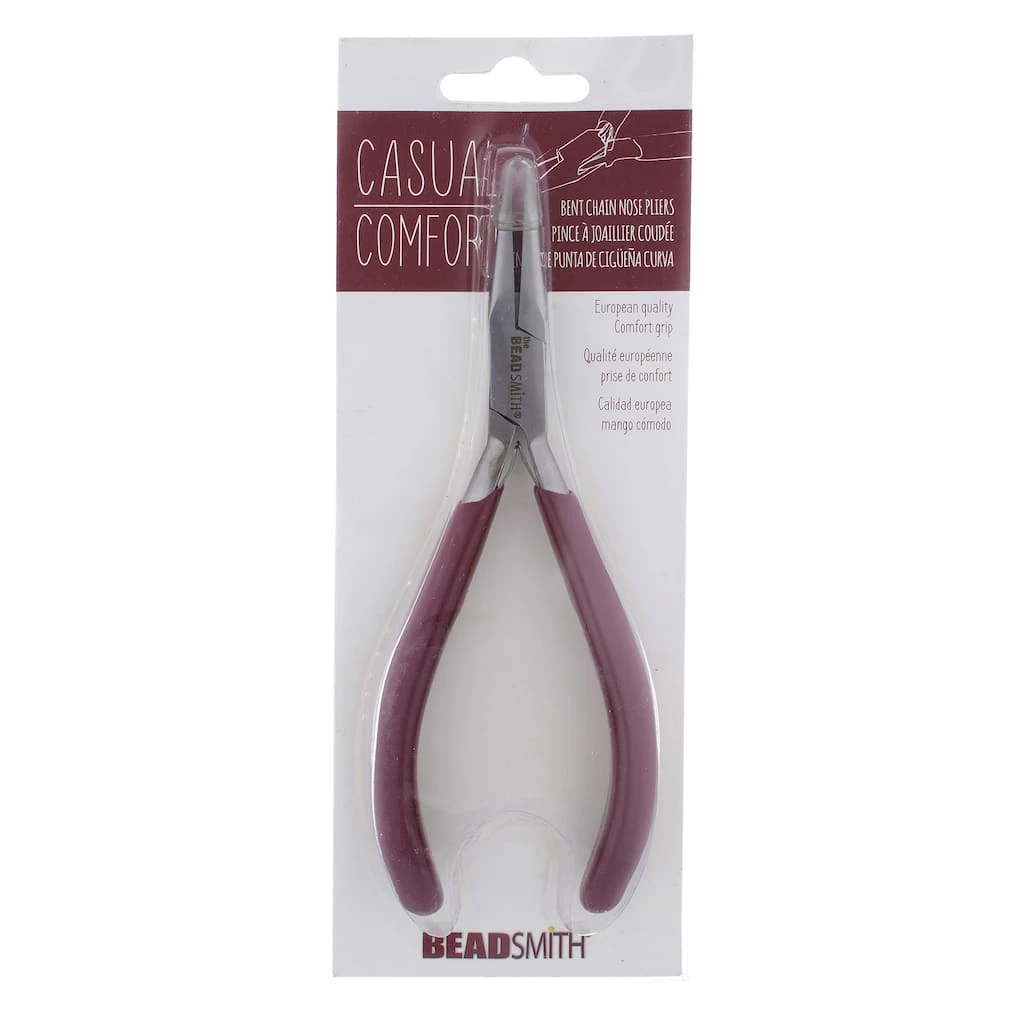 The Casual Comfort line of tools from The Beadsmith are ergonomically designed and a must have for a beader’s tool kit. The handles feature a soft vinyl grip for comfortable use, ideal for repetitive tasks. These pliers typically used to create angled bends in wire, closed bead tips, open and close jump rings, form loops, and pick up small parts.ย