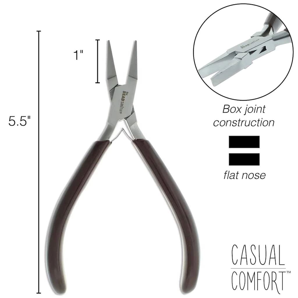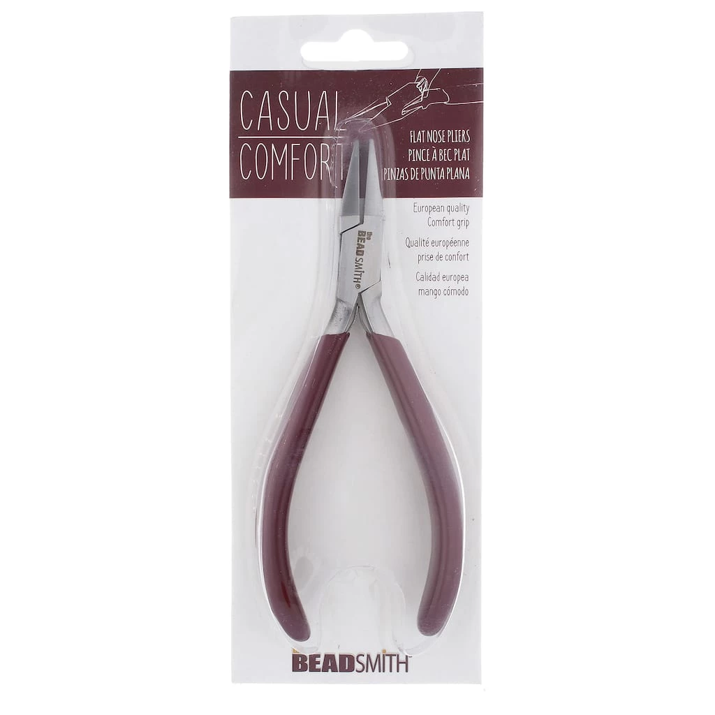 The Casual Comfort line of tools from The Beadsmith are ergonomically designed and a must have for a beader’s tool kit. The handles feature a soft vinyl grip for comfortable use, ideal for repetitive tasks. Flush cutters may be used to trim soft craft wire, head pins, and eye pins. They are NOT suitable for cutting memory wire, flex wire, or steel wire. They can fit into tight places and will produce a flat, even cut so less filing and cleanup is needed.ย