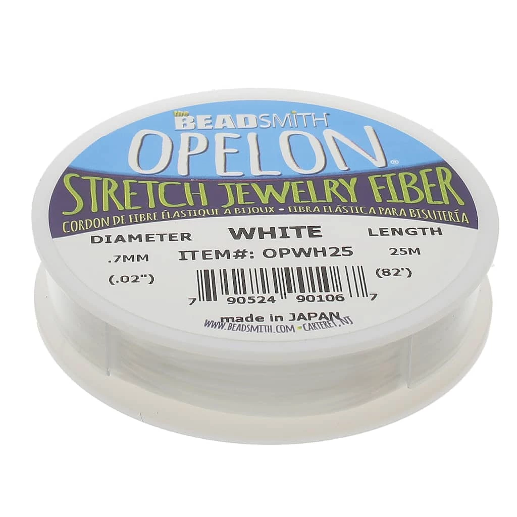 A flat fibrous cord that has surprising stretch and resiliency, this cord is unbelievably strong, easily knottable and doesn’t require crimps! Opelon’s flat structure gives it greater flexibility than other stretch cord options and it won’t “droop” over time.