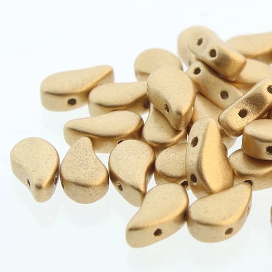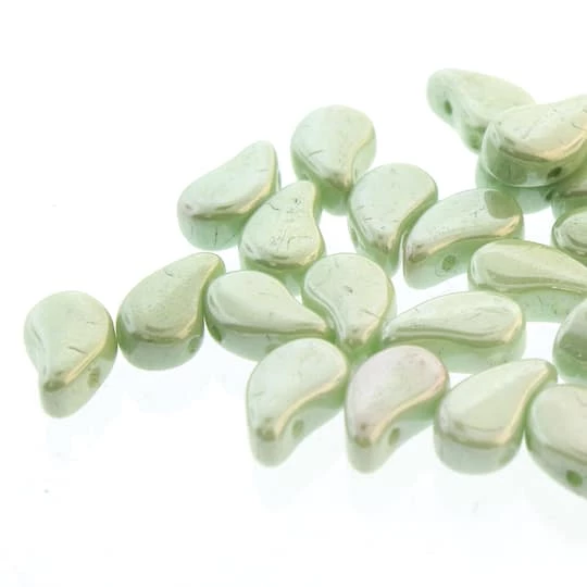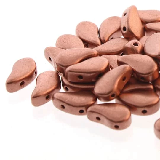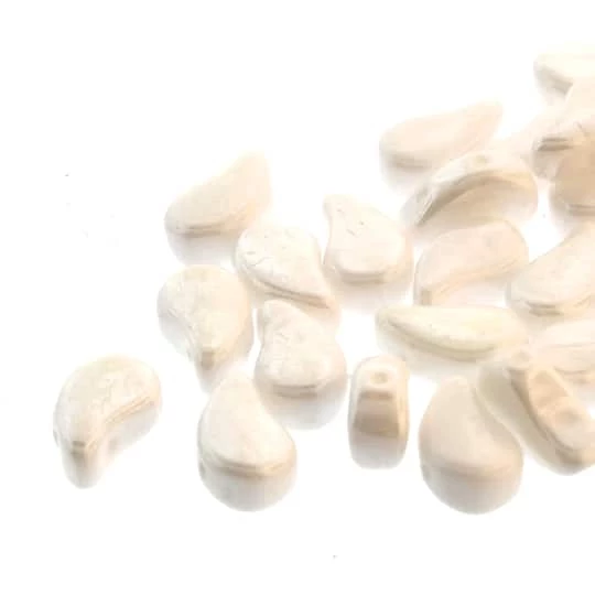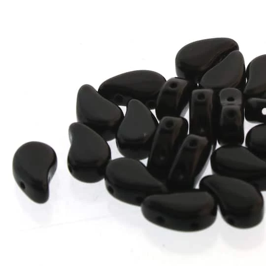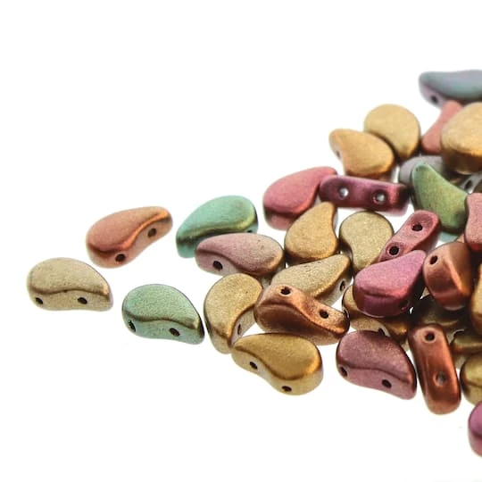 Paisley duo Czech glass beads are a unique 2-hole, curved shaped bead which resembles a teardrop with a curved point. These beads nestle together to form amazing mosaics and patterns. Paisley duo beads are flat on top and bottom and can be used in either the left or right orientation. Used on their own or combine with other Czech glass components to create cutting edge, fashionable jewelry. Features Two parallel holes which are perfect for both bead stringing as well as bead weaving.ย