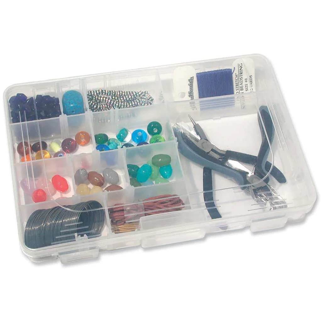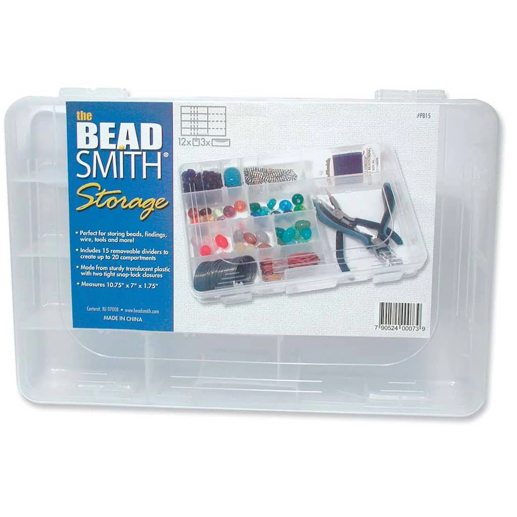 Great containers for all your storage needs! Perfect for storing beads, findings, wire, tools and more in the studio or on the go. Includes 15 removable dividers to create up to 20 compartments. Made from sturdy translucent plastic with two tight snap-lock closures.