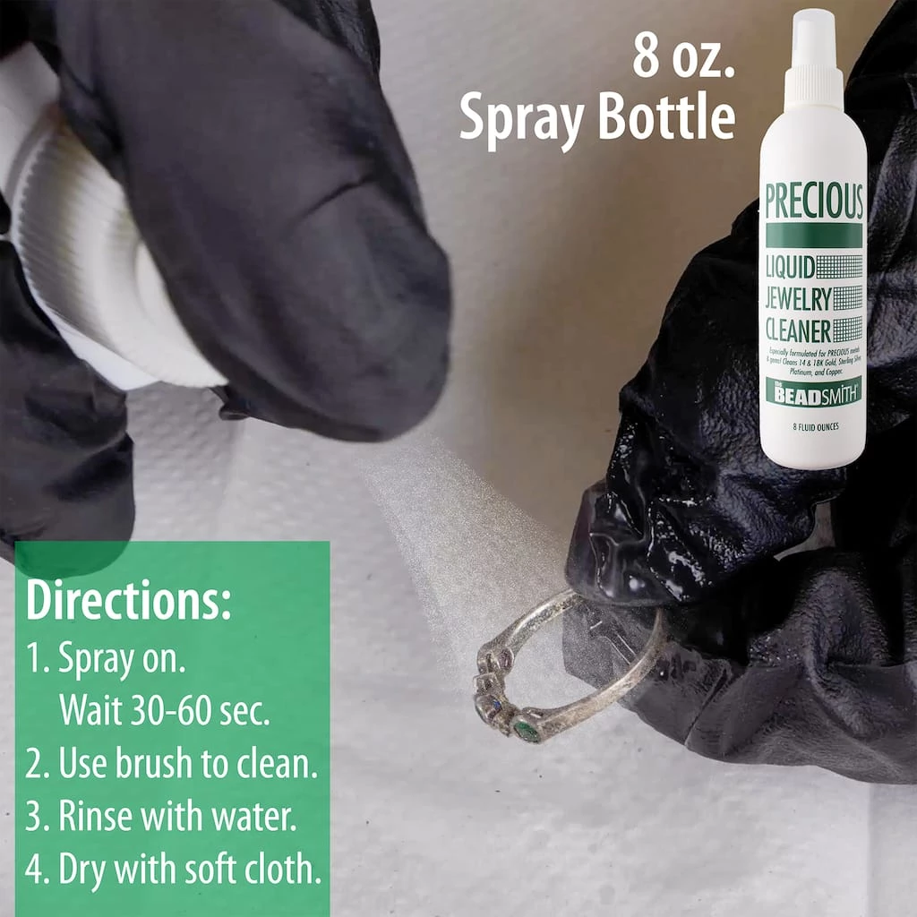 Specially formulated for PRECIOUS metals & gems! Cleans 14 and 18K Gold, Sterling Silver, Platinum, and Copper, as well as diamonds, rubies, sapphires, and more! This cleaner has been especially formulated for all fine jewelry.