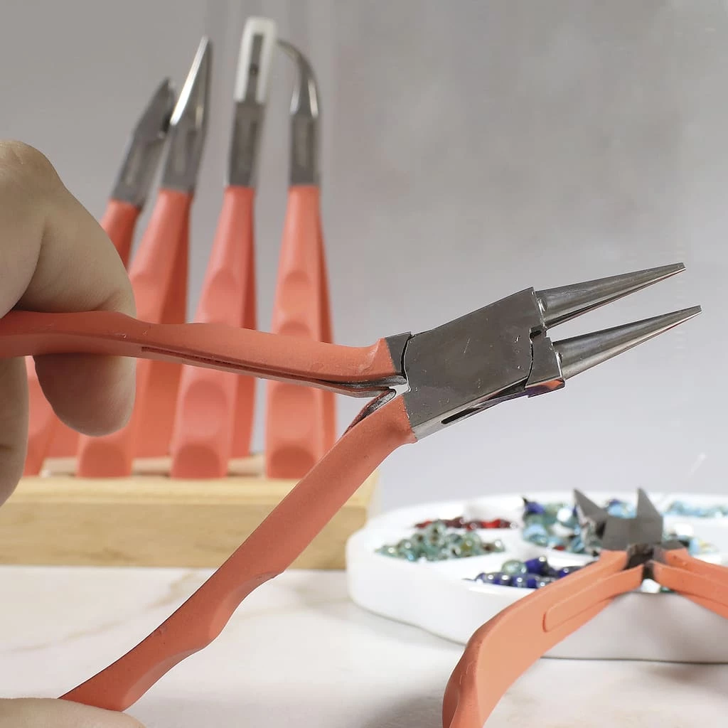This tool set features a cloth case and coral colored Satin Touch handles. Use the assorted tools for all your jewelry projects.