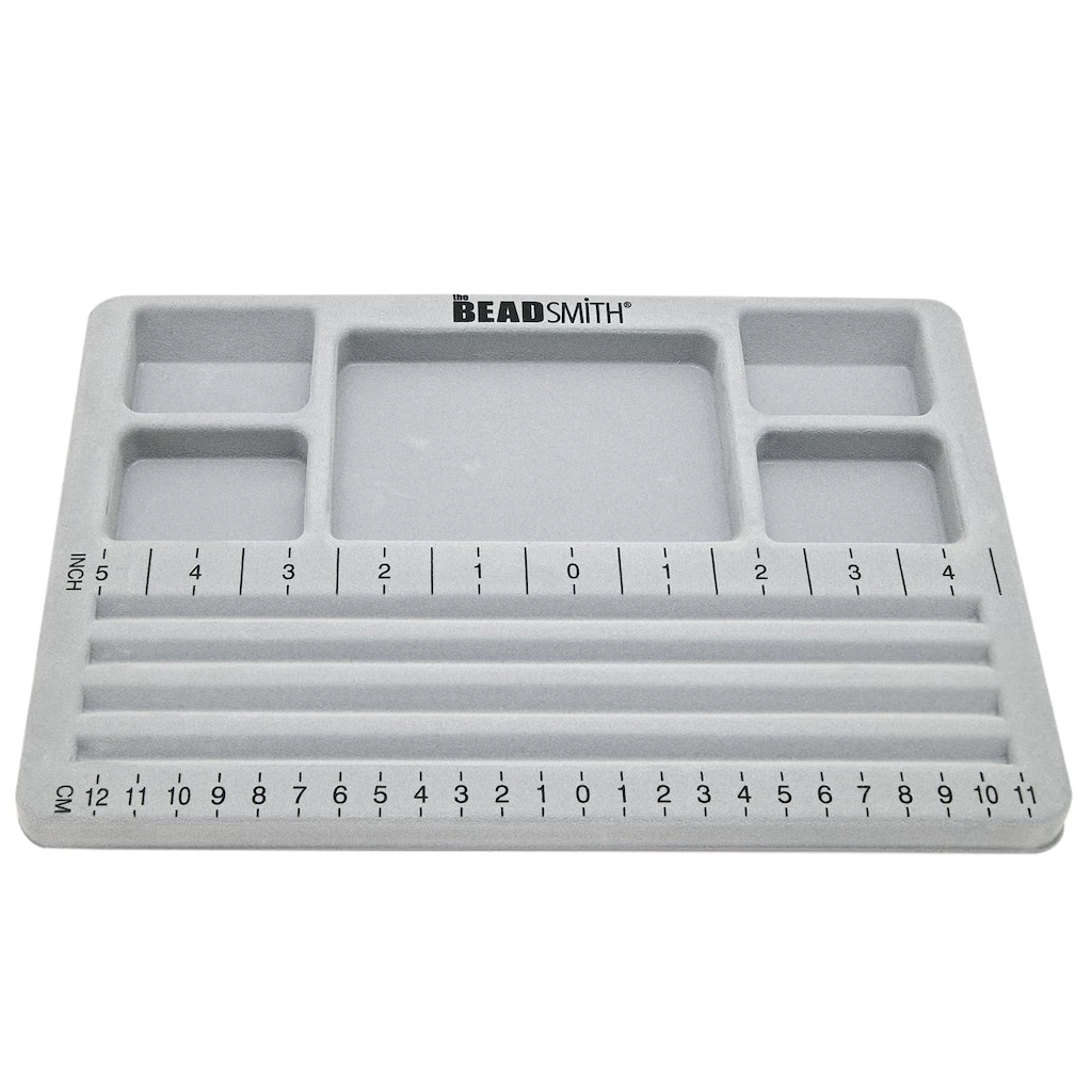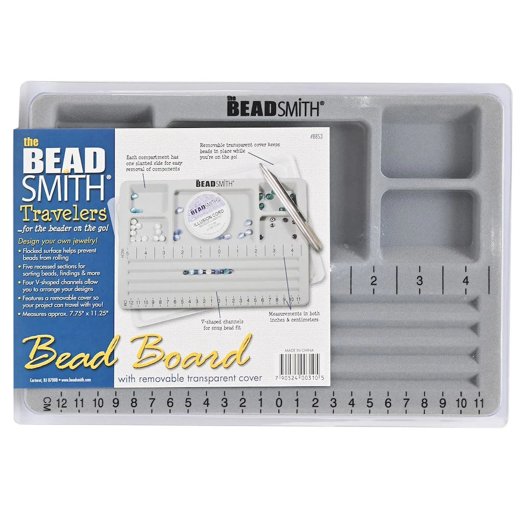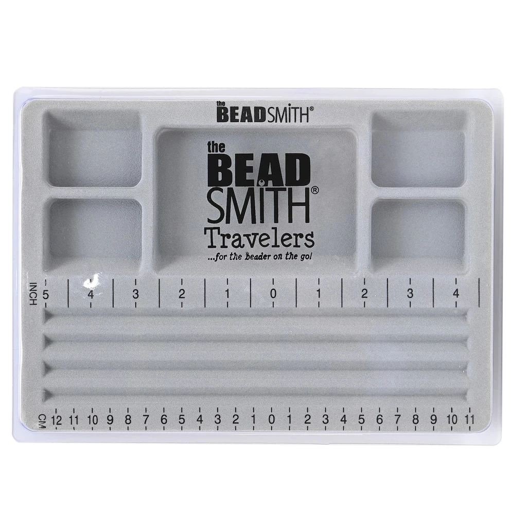 The Beadsmith Travelers Bead Board features a removable cover so you can take your project anywhere. Its flocked surface helps prevent beads from rolling. It has recessed sections for sorting beads and findings.ย