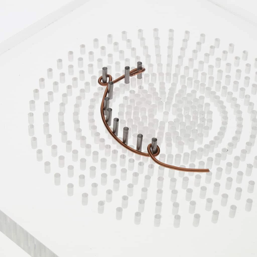 The creators of the original clear acrylic Wig Jigยฎ now brings the next generation in wire working jigs: the Cyclops. This transparent Wig Jig has a peg template in a starburst pattern to facilitate making designs with curves, stars, circle.