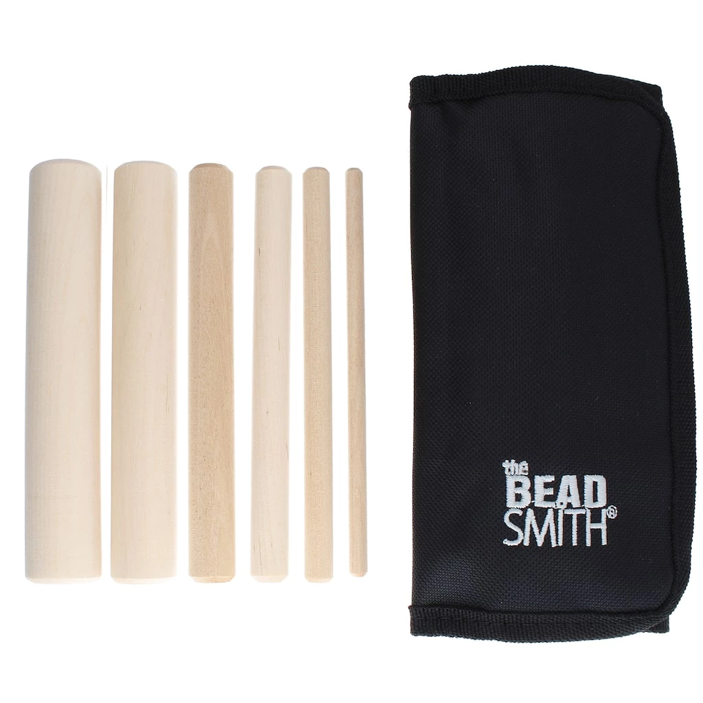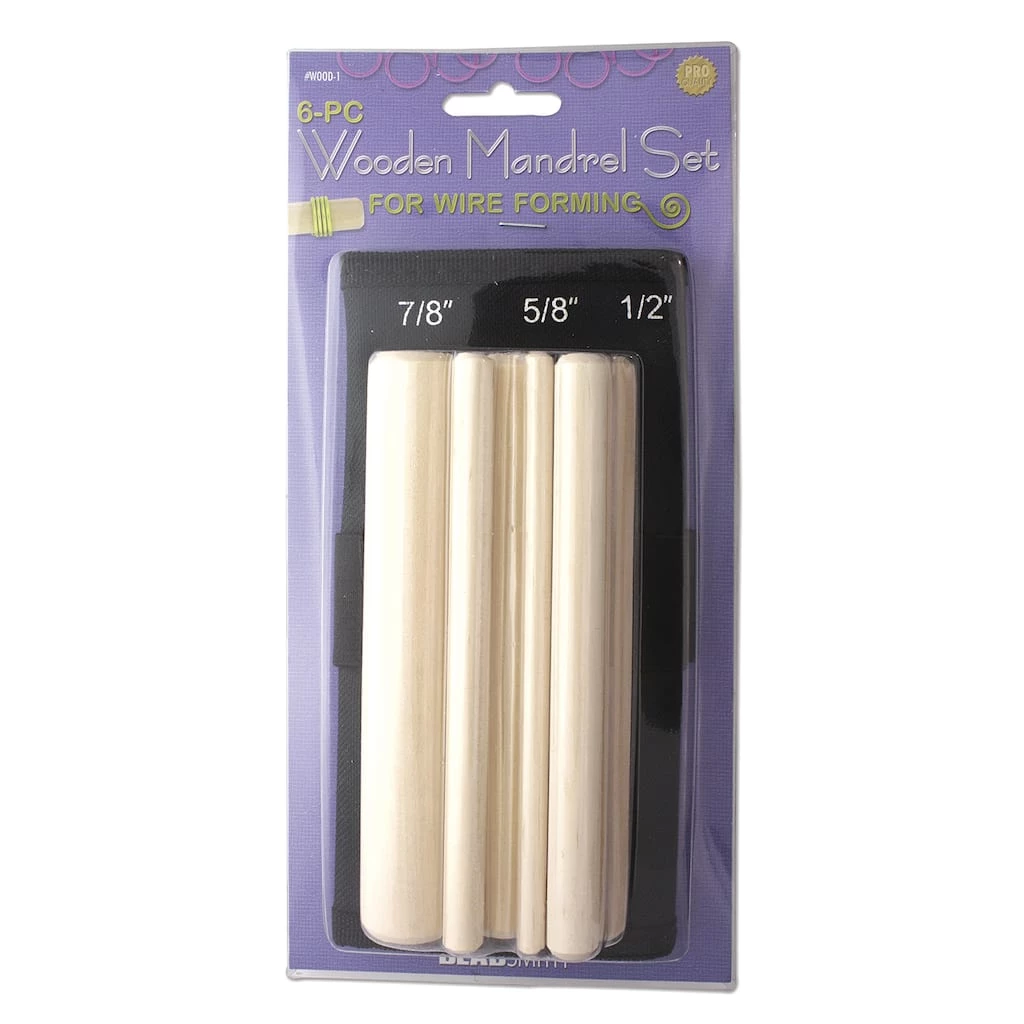 This Beadsmith® wooden mandrel set can be used to make large jump rings and to create curves and loops in wire jewelry designs. Ideal for continuous crcle aluminum wire jewelry projects. Set includes 6 round wooden mandrels in a compact, labeled storage case.